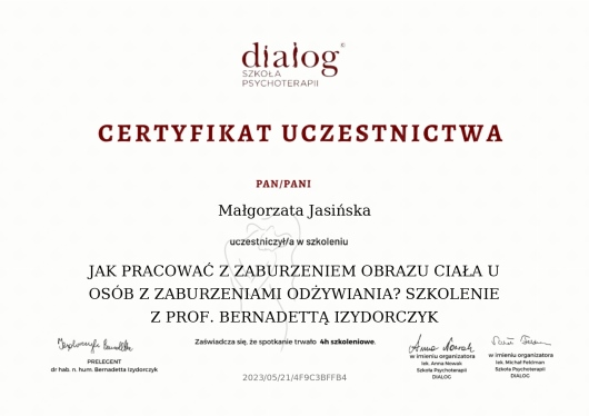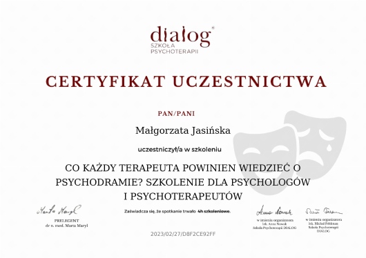 Sesje psychoterapii indywidualnej online w języku polskim lub angielskim. Wsparcie w kryzysach emocjonalnych, zaburzeniach lękowych, depresji oraz pracy nad poczuciem własnej wartości. Bezpieczne wideospotkania dostępne z dowolnego miejsca.
