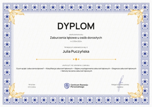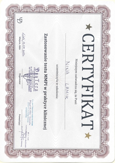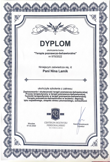 Pani Nina potrafi stworzyć atmosferę zaufania i bezpieczeństwa, dzięki czemu łatwiej otworzyć się i pracować nad swoimi trudnościami. Spotkania są zawsze merytoryczne, ale też pełne ciepła i zrozumienia. Dzięki terapii udało mi się lepiej zrozumieć siebie i wprowadzić pozytywne zmiany w życiu. Z całego serca polecam Panią Ninę każdemu, kto szuka wsparcia i skutecznej pomocy psychologicznej.