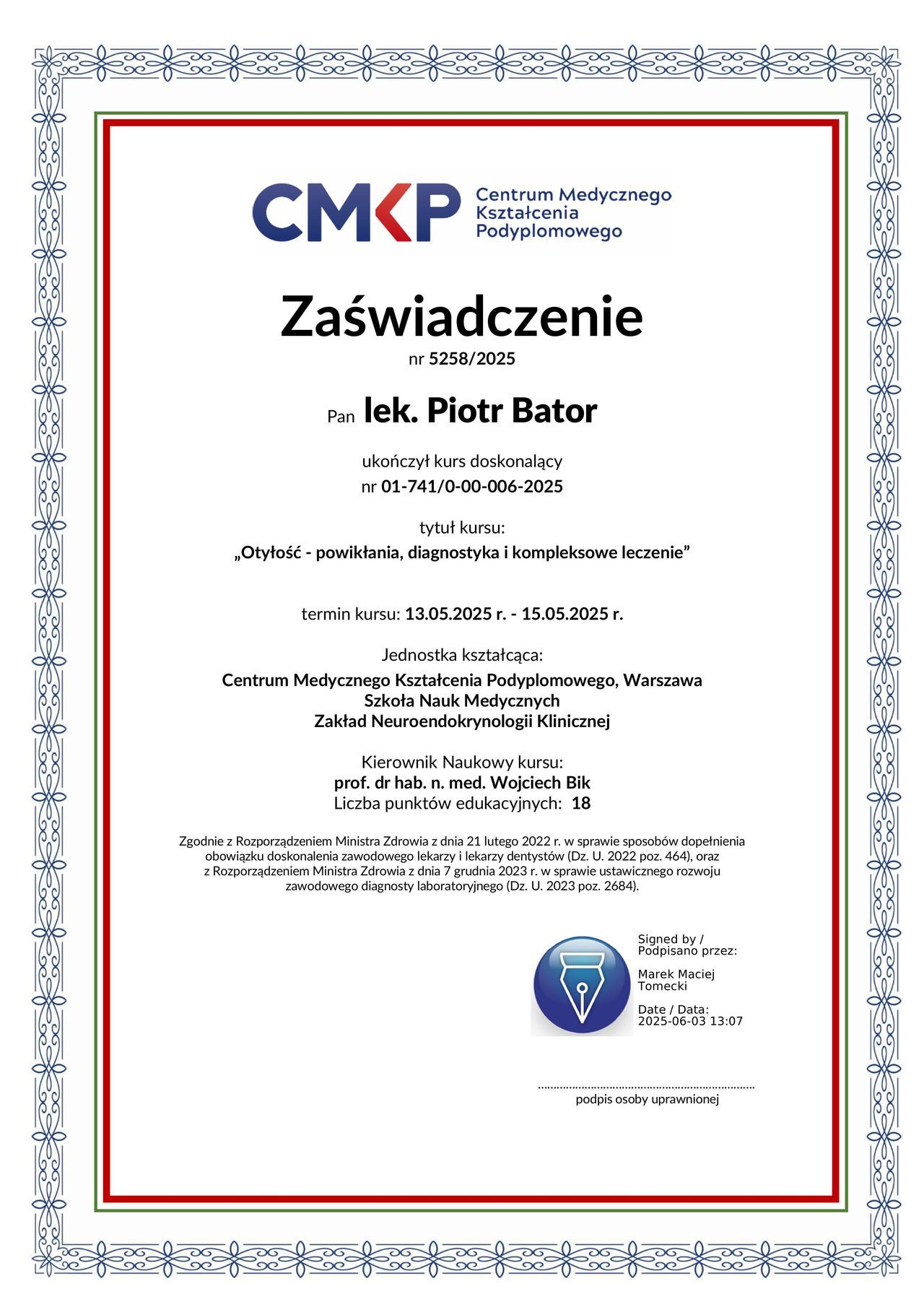 Lekarz zlecił poprawne badania z których postawił diagnozę i dobrał leki na cukrzycę typu II. Czuję się lepiej po wdrożeniu zaleceń od lekarza i widzę spadek wagi, co przekłada się na moją jakość życia i lepsze samopoczucie. Do zobaczenia na wizycie kontrolnej. Polecam!