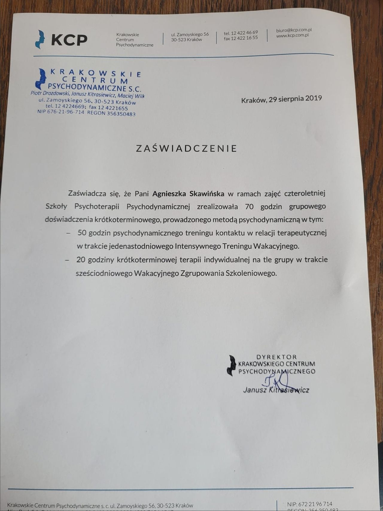 Dziękuję za spotkania, to były jak do tej pory bardzo owocne spotkania, pomogły zobaczyć mi mój problem w szerszej perspektywie, mam nadzieję na poprawę w życiu.