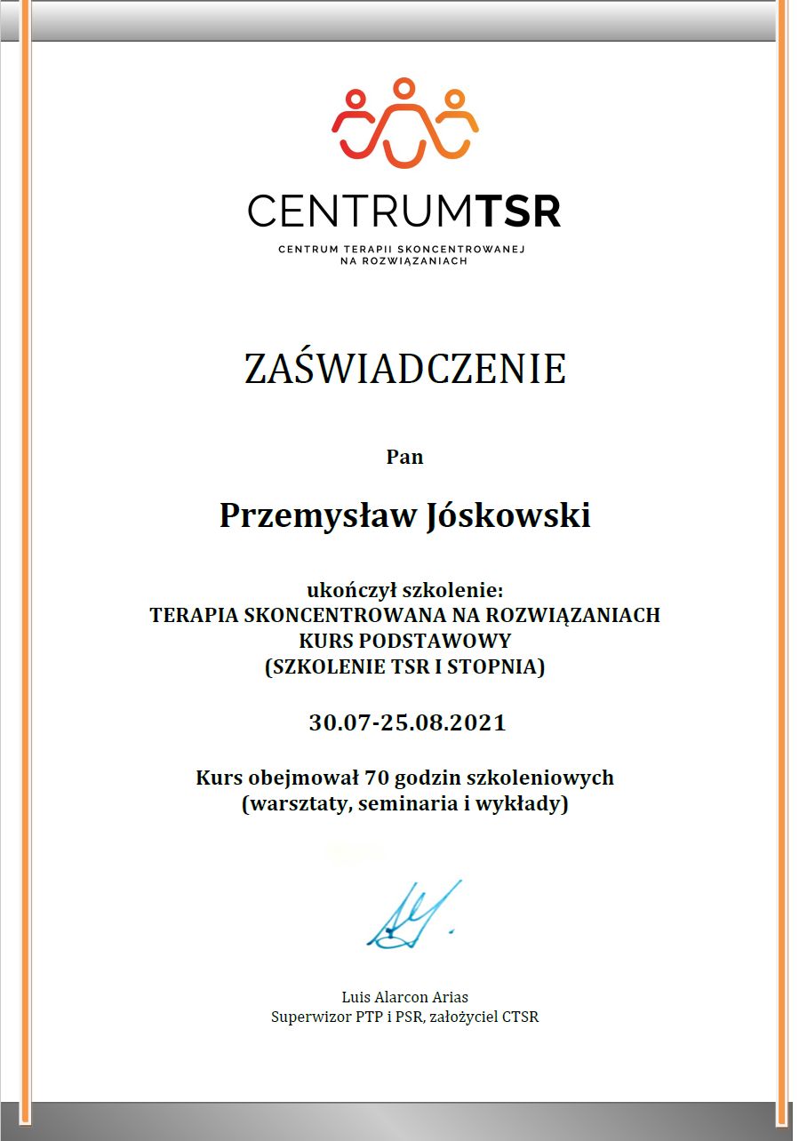 Ukończyłem kurs I stopnia Terapii Skoncentrowanej na Rozwiązaniach w Centrum Terapii Skoncentrowanej na Rozwiązaniach, by zdobyć pierwsze narzędzia do udzielania wsparcia długoterminowego. Odbyłem także szkolenia "Jak zmotywować pacjentów do podjęcia leczenia (Nowe Horyzonty) oraz "Depresja i samobójstwa wśród dzieci i młodzieży" (Małopolskie Centrum Profilaktyki). W styczniu 2026 rozpoczynam również zajęcia w Szkole Psychoterapii "Dialog" w Warszawie, gdzie przez 4 lata odbywał będę szkolenie psychoterapeutyczne z terapii integracyjno-systemowej akredytowanej przez Polskie Towarzystwo Psychiatryczne.