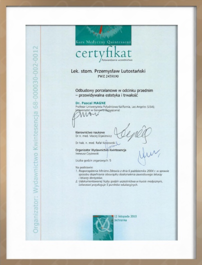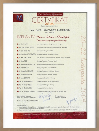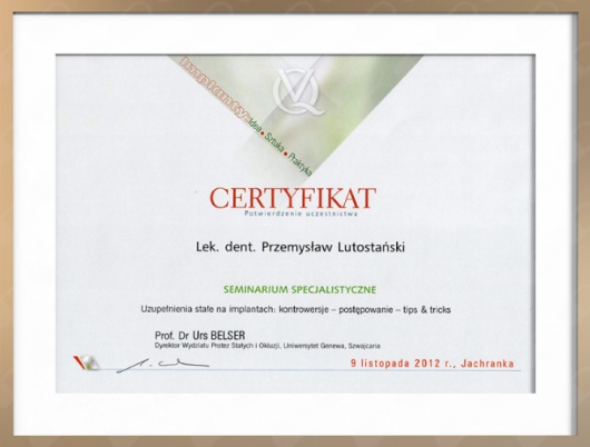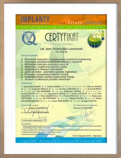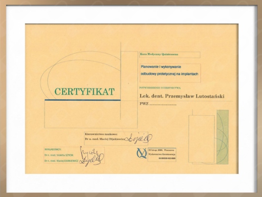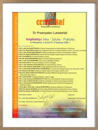 To już 20 lat jak wszczepiam implanty. Cieszę się że dają satysfakcję. Duża zasługa utrzymania tego rozwiązania jest po Pani stronie. Gratuluję dbałości, dobrej higieny i regularnych wizyt u higienistki.