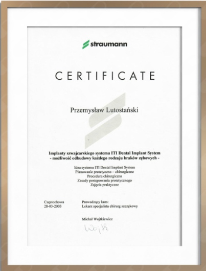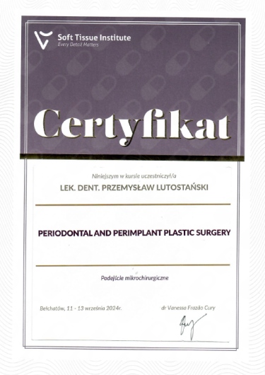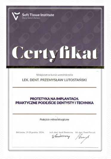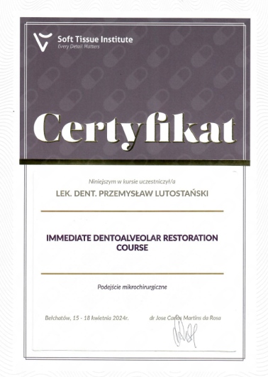 Bardzo dobry chirurg stomatologiczny i empatyczny lekarz. Perfekcyjnie wykonał u mojej córki skomplikowany zabieg usunięcia zatrzymanej ósemki (ryzyko uszkodzenia nerwu i siódemki). Trafna diagnoza, wyjaśnienie przebiegu zabiegu oraz alternatywnego rozwiązania w razie wystąpienia komplikacji zmniejszyło u córki stres. Podsumuję używając słów córki "zrobił Pan kawał dobrej roboty panie doktorze". Dziękuję i polecam doktora Lutostańskiego wszystkim, którzy mają poważne problemy stomatologiczne.