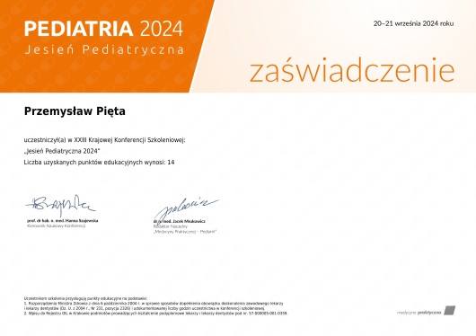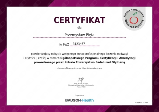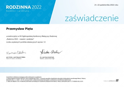 Jak Przemysław Pięta umawia wizyty?Przemysław Pięta używa kalendarza ZnanyLekarz, dlatego na stronie widzisz aktualne terminy. Wystarczy, że wybierzesz datę i godzinę, które odpowiadają Ci najbardziej. Umawianie wizyty jest darmowe, a tuż przed terminem wyślemy Ci przypomnienie.