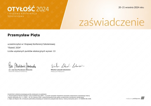 Przemysław Pięta: co mówią pacjenci?25 osób dodało swoją opinię. Przemysław Pięta ma średnią ocen 5 (na 5 gwiazdek).