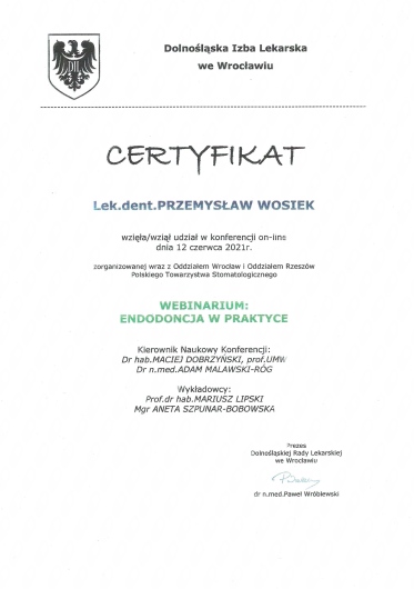 Studia ukończyłem na Uniwersytecie Medycznym we Wrocławiu na kierunku lekarsko-dentystycznym. W codziennej praktyce zajmuję się głównie chirurgią stomatologiczną oraz endodoncją. Uczestniczę w szkoleniach i kongresach przez co nieustannie podnoszę swoje kwalifikacje.