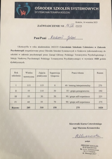 Przez ponad rok uczęszczałem na psychoterapię do Pana Radomiła i myślę, że była to jedna z najlepszych decyzji w moim życiu. Dzięki terapii bardzo dużo się nauczyłem i dużo lepiej rozumiem samego siebie. Sposób prowadzenia spotkań przez Pana Radomiła bardzo mi odpowiadał, od pierwszego spotkania czułem, że mogę mu zaufać i że jest bardzo dobrym specjalistą - przez ten cały rok ani razu nie pomyślałem inaczej.