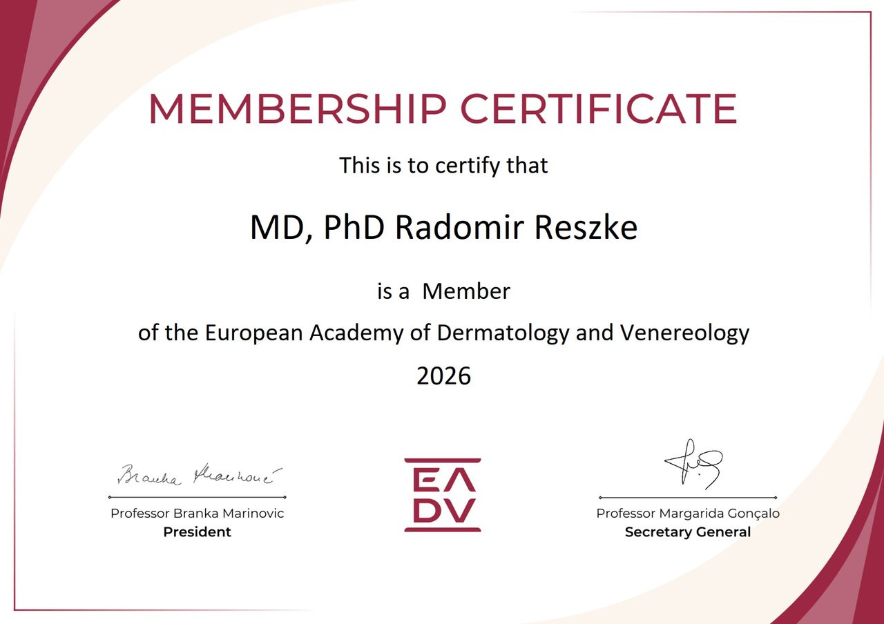 Jaki jest zakres porad oferowanych przez Radomir Reszke?Radomir Reszke to dermatolog. Na podstawie swojego doświadczenia i wykształcenia Radomir Reszke oferuje usługi takie jak: konsultacja dermatologiczna, Konsultacja dermatologiczna dzieci, konsultacja dermatologiczna z dermatoskopią do 3 zmian.