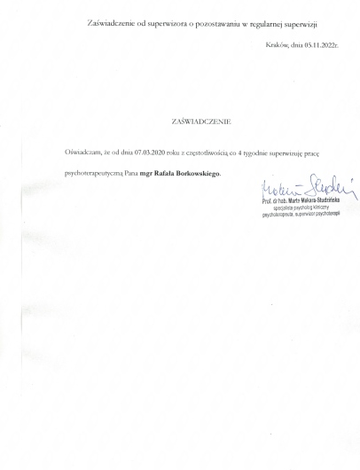 Cały proces psychoterapii z Panem mgr. Rafałem był dla mnie dobrym czasem który jest owocny nawet po zakończeniu psychoterapii.