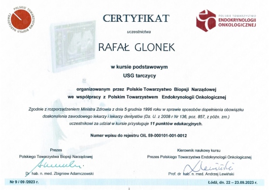 Dzięki wysokiemu profesjonalizmowi i wnikliwej diagnostyce został wykryty na wczesnym etapie rak złośliwy tarczycy. Jestem niezmiernie wdzięczna. Polecam Pana Doktora z całego serca.