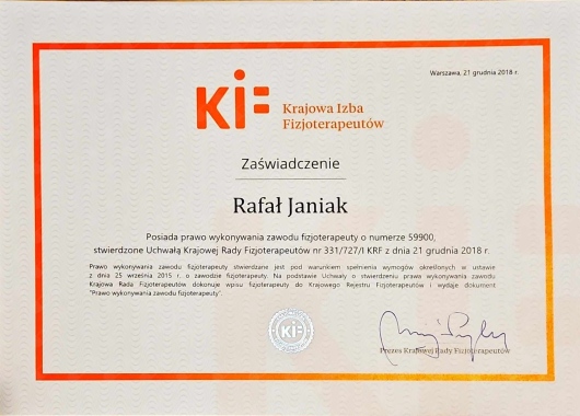 Serdecznie polecam Pana Rafała. Wiedza poparta doświadczeniem, facet wie o czym mówi, najważniejsze że Jego rady działają. Po 2 wizytach u neurochirurgów w Polsce i opinią: "Pan sie szykuje do operacji, nic tu nie pomoże pomoze" trafiłem pod skrzydła Pana Rafała, który rzetelnie i z zaangażowaniem podszedł do mojej sytuacji, odrzuciliśmy myśl operacji i udało się wrócić do sprawności w szybkim tempie, zaliczając egzamin roczny z wychowania fizycznego w służbach mundurowych na maksymalna liczbę punktów! Pan Rafał jest warty zaufania, zaangażowany i młody fizjoterapeuta, który z empatia podchodzi do swoich pacjentów. Systematyczność i zaangażowanie w ćwiczenia, które pokazuje i objaśnia Pan Rafal jest kluczem do sukcesu.