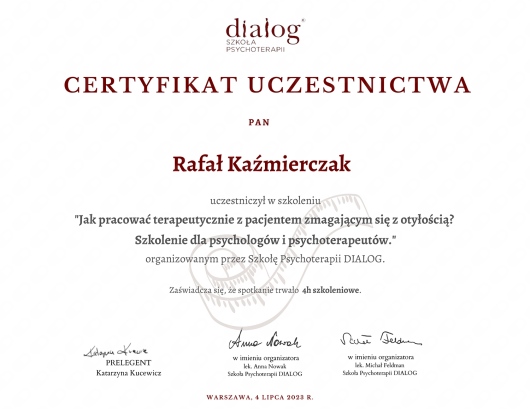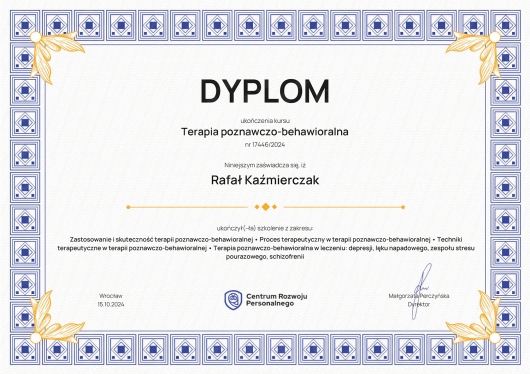 Pan Rafał wykazywał się dużą otwartością, zrozumieniem, drążył do sedna problemów, udzielał spersonalizowane wskazówki i porady, nakreślił kolejne kroki. Zamierzam kontynuować wizyty.