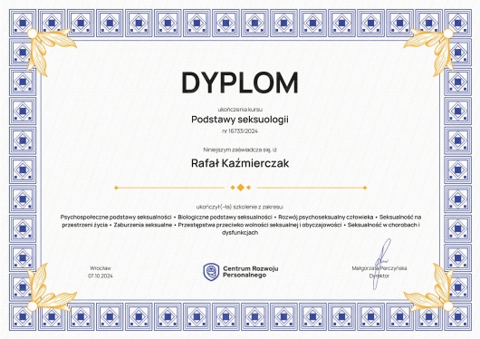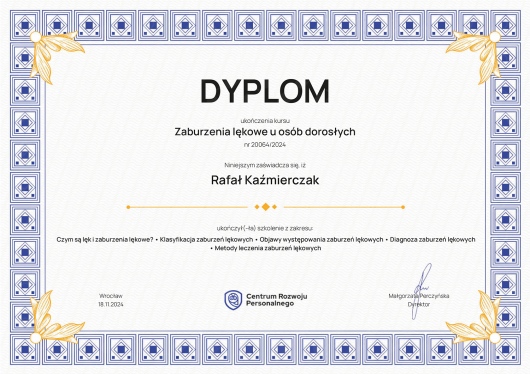 Swoją wiedzę i kompetencje pogłębiam nieustannie biorąc udział w kursach i szkoleniach. W swojej pracy skupiam się na wsparciu osób przeżywających kryzysy emocjonalne oraz na pracy z parami borykającymi się z trudnościami w związku.