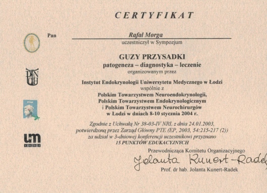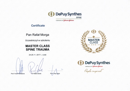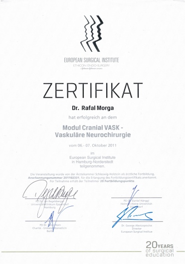 Specjalizacja lI st. w dziedzinie neurochirurgia.