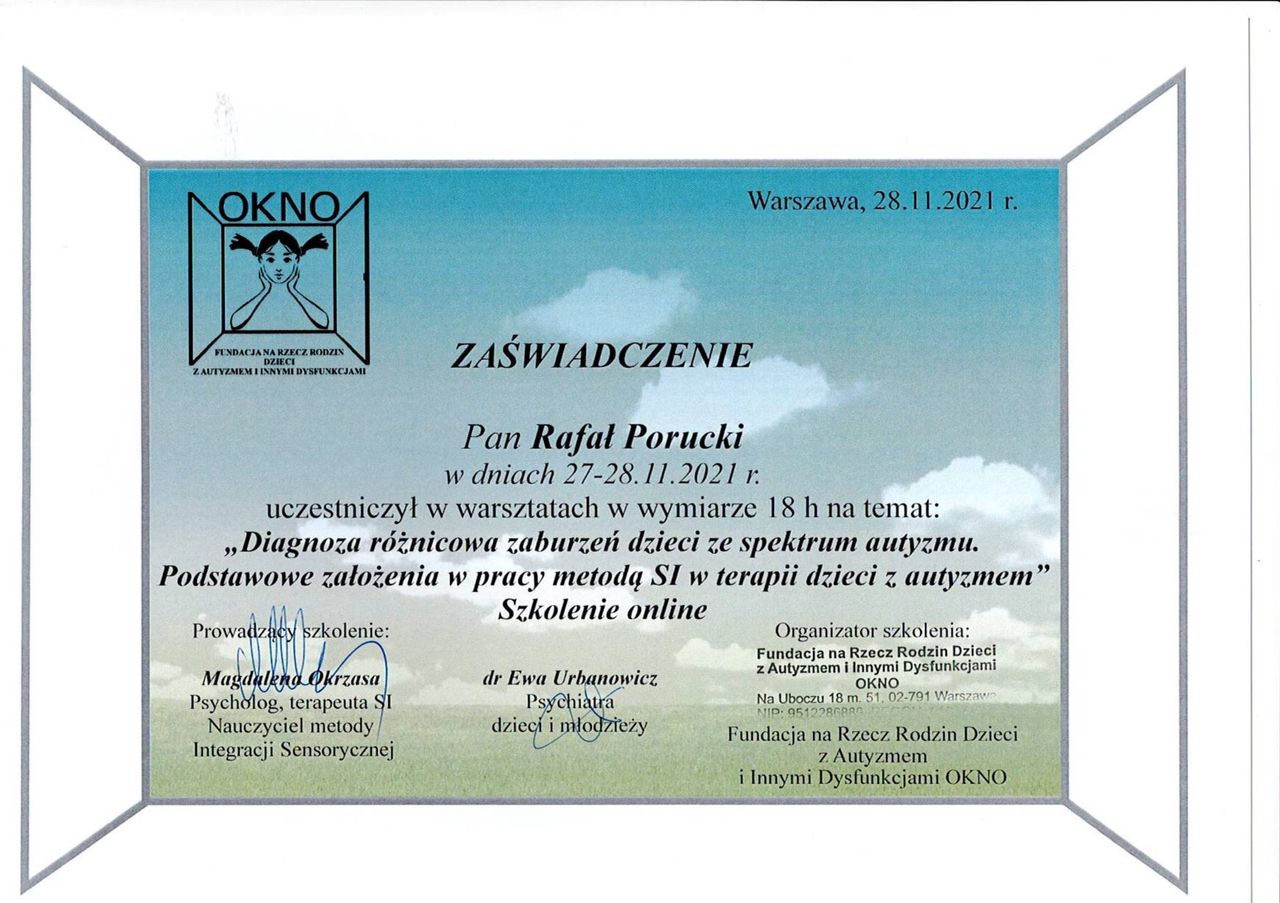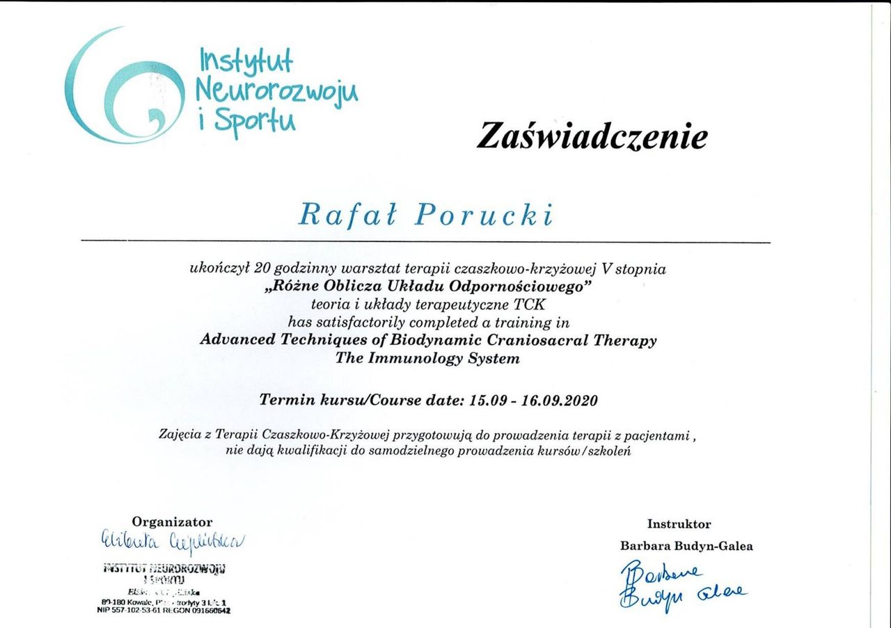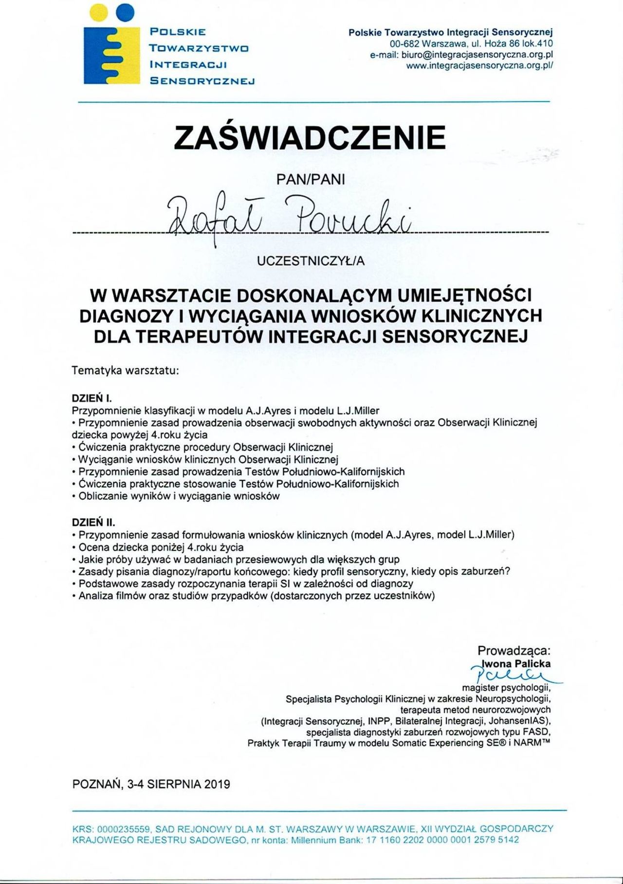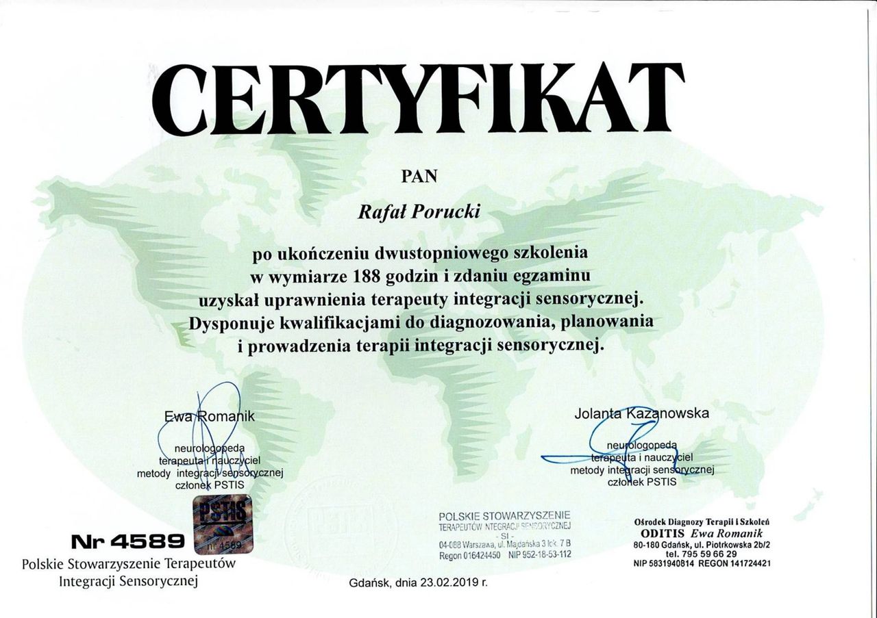 Jaki jest zakres porad oferowanych przez Rafał Porucki?Rafał Porucki to fizjoterapeuta. Na podstawie swojego doświadczenia i wykształcenia Rafał Porucki oferuje usługi takie jak: integracja sensoryczna, Terapia czaszkowo-krzyżowa, Diagnoza zaburzeń integracji sensorycznej z opinią, Fizjoterapia dzieci (kolejna wizyta), Fizjoterapia stawów skroniowo-żuchwowych, konsultacja fizjoterapeutyczna dzieci.