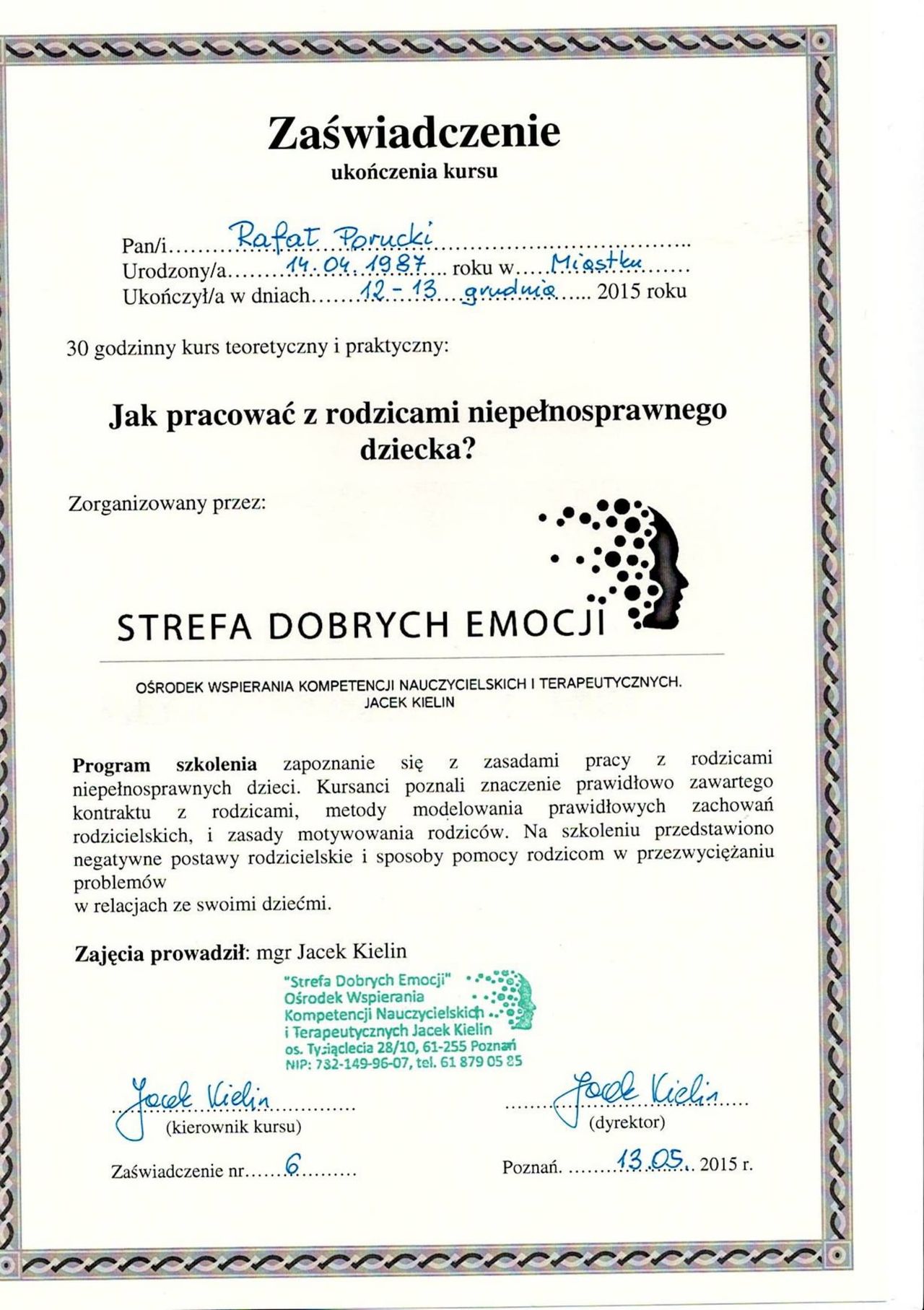 Widać u niego konsekwencję, profesjonalizm i autentyczne zaangażowanie w wykonywaną pracę oraz indywidualne podejscie do dziecka.