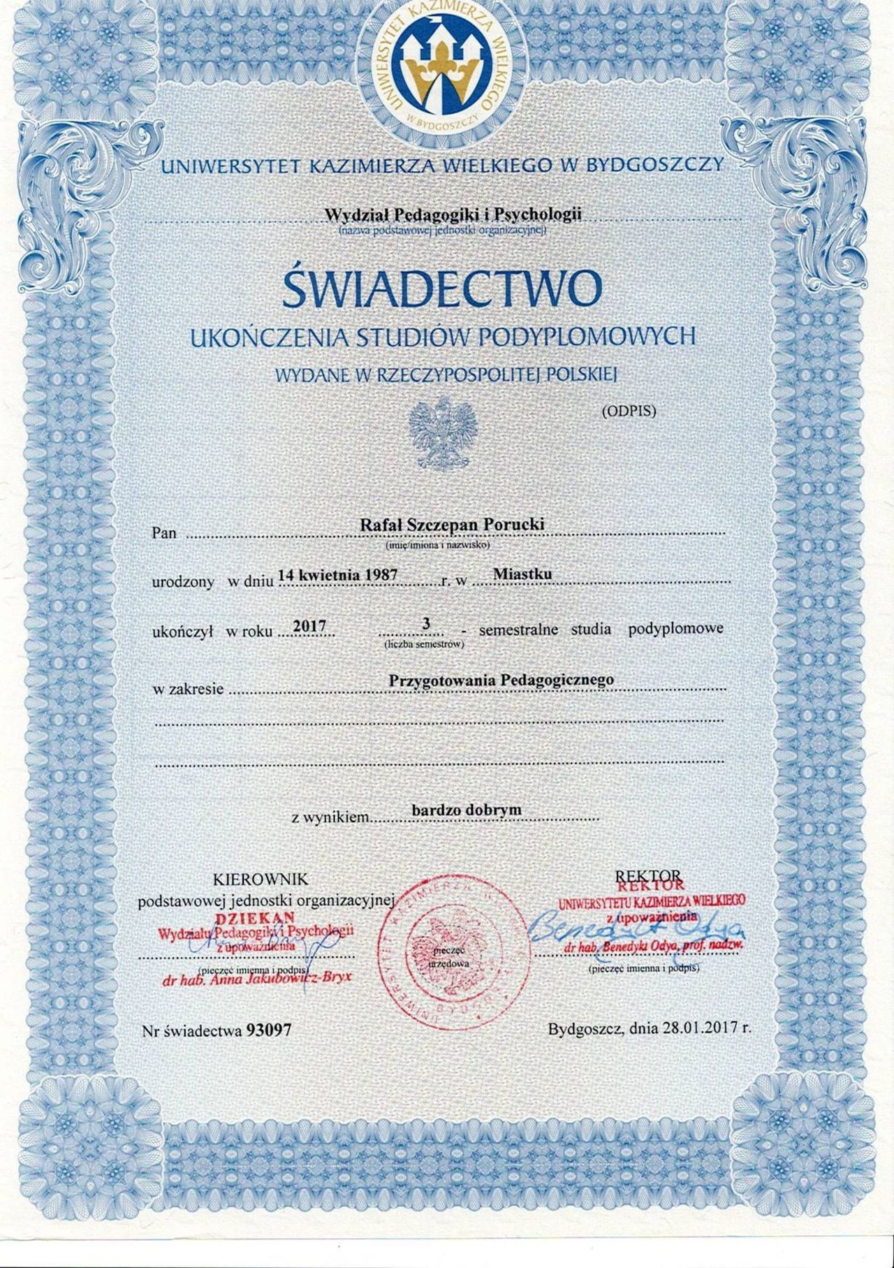 Pan Rafał zawsze z niesamowitym zaangażowaniem przeprowadza zajęcia. Posiada bogatą wiedzę merytoryczną i doświadczenie. Dziękujemy za pasję i profesjonalizm, które przekładają się na efekty.