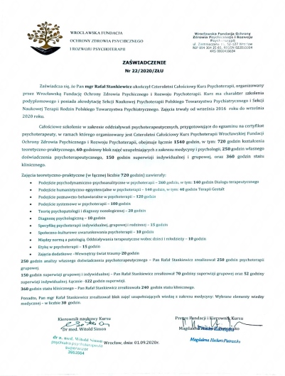 Pan Rafał jest terapeutą zaangażowanym, skupionym na pacjencie. Wysuwa trafne wnioski, kieruje sprawnie terapią. Miły, empatyczny oraz spokojny, otwarty na analizę wątku z różnych perspektyw. Nie wywiera presji jak i tempa przerabianych tematów. Polecam, opinie wystawiam na podstawie rocznych spotkań z Panem Rafałem.