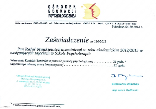Pan Stankiewicz to dobry terapeuta. Na sesjach czuć, ze jest zainteresowany pacjentem. Jego komentarze są zwykle w punkt, zawsze sa powodem do dalszych przemysleń. Cieszę się, ze to własnie jego wybralam na swojego terapeutę. I polecam innym.
