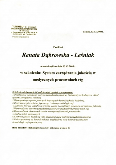 Profesjonalizm i bardzo miła obsługa polecam Panią doktor Renatę .