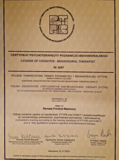 I am a member of the Polish Society of Cognitive and Behavioral Therapy.