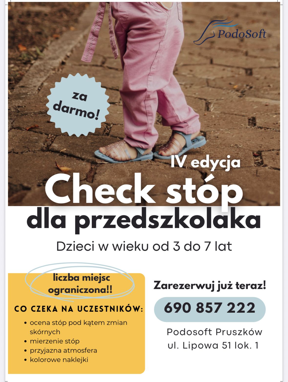 W październiku 2025 r. zakończyliśmy 4. akcję pro bono skierowaną do pruszkowskich mam i ich pociech - Check stóp dla przedszkolaka.