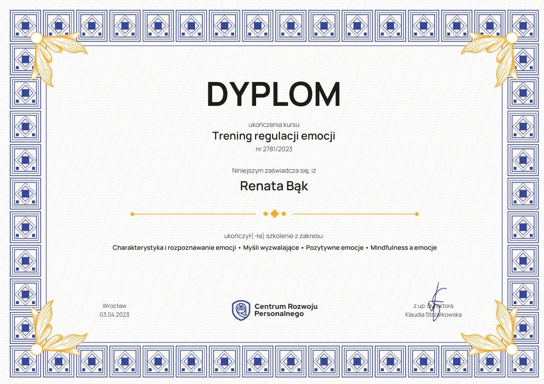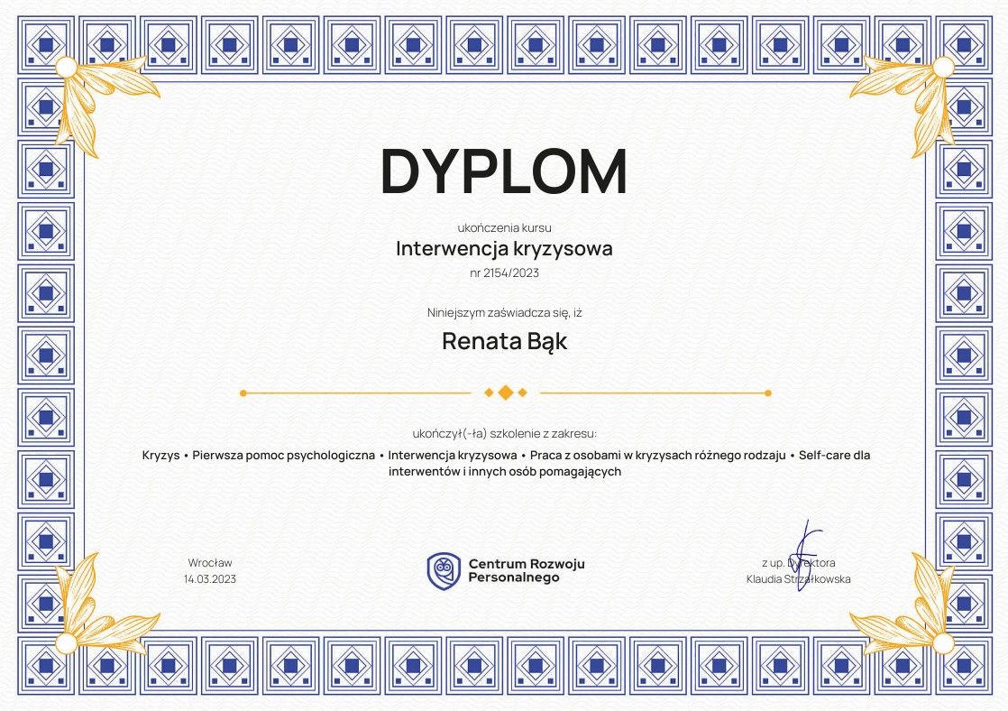 Bardzo polecam, już po pierwszym spotkaniu poczułam się spokojniejsza i wiem , że z Panią Renatą poradzę sobie z problemami, które mnie przytłaczają. Niezwykle ciepła i sympatyczna osoba.