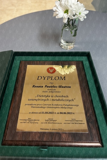 Nazywam się Renata Pawelec-Wawron. Z wykształcenia jestem magistrem dietetyki i prowadzę prywatną praktykę. Ukończyłam studia I i II stopnia na Uniwersytecie Przyrodniczym w Lublinie oraz studia podyplomowe na kierunku „Dietetyka w chorobach wewnętrznych i metabolicznych” na Warszawskim Uniwersytecie Medycznym. Specjalizuję się w dietetyce klinicznej z opracowaniem diet leczniczych (m.in. w otyłości, nadciśnieniu tętniczym, cukrzycy, chorobach układu krążenia i innych chorobach dietozależnych) oraz poradnictwie dietetycznym.