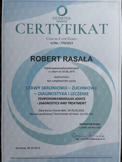 Bardzo duże zaangażowanie i pełen profesjonalizm, wysoka dawka wiedzy dla pacjenta. Pan Robert poświęca dużo czasu na wizycie na wyjaśnienia. Jestem bardzo zadowolona.