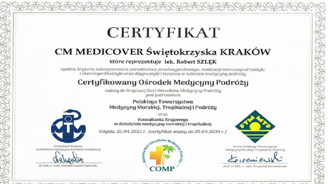 Jaki jest zakres porad oferowanych przez Robert Szlęk?Robert Szlęk to internista. Na podstawie swojego doświadczenia i wykształcenia Robert Szlęk oferuje usługi takie jak: konsultacja internistyczna, konsultacja lekarza medycyny podróży.