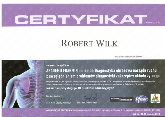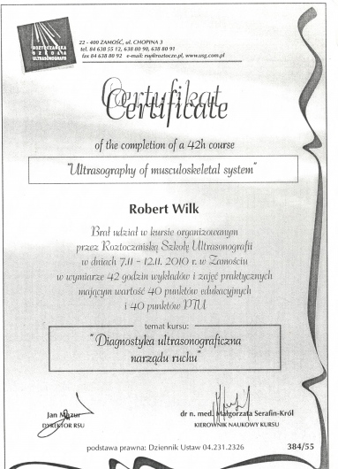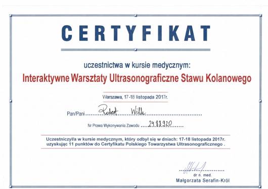 Jaki jest zakres porad oferowanych przez Robert Wilk?Robert Wilk to ortopeda. Na podstawie swojego doświadczenia i wykształcenia Robert Wilk oferuje usługi takie jak: USG stawów biodrowych niemowląt, konsultacja ortopedyczna.