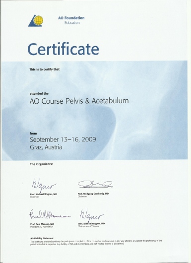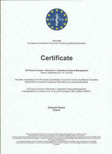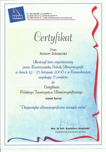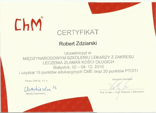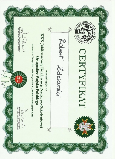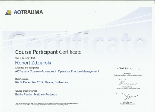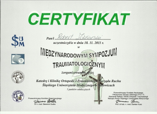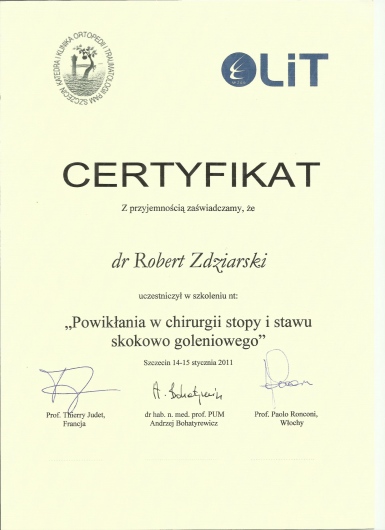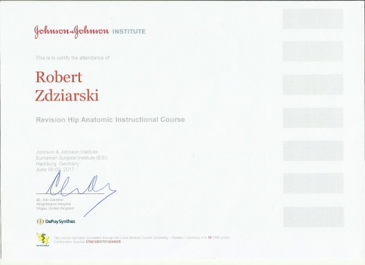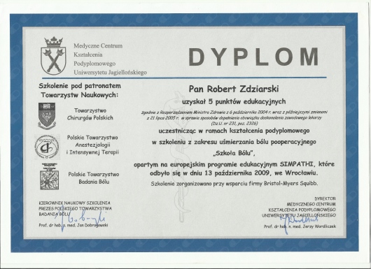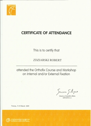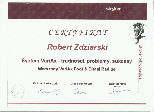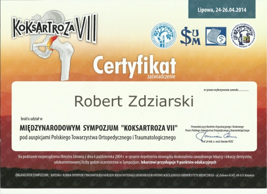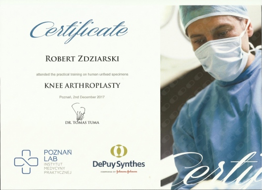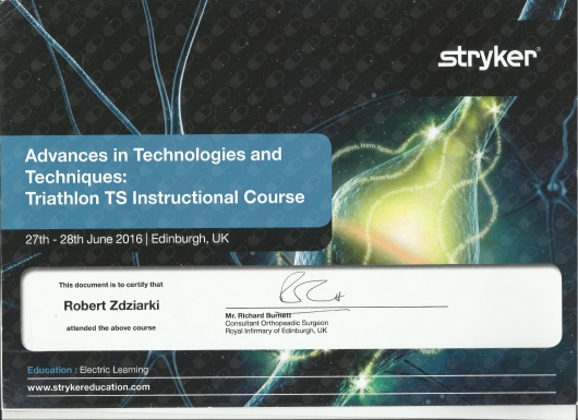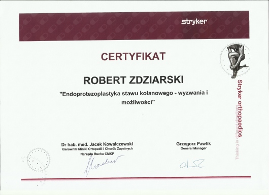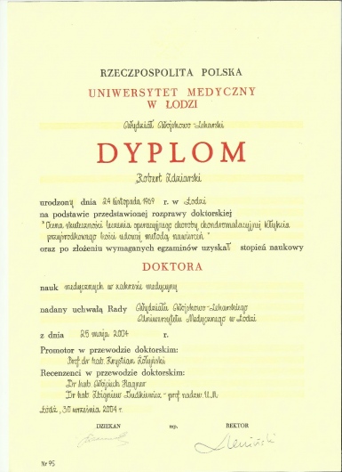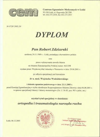 Dyplom uzyskał w 1994 roku, tytuł specjalisty ortopedii i traumatologii narządu ruchu