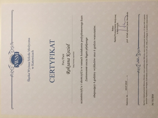 Jakie ubezpieczenia akceptuje Roksana Kozieł?Roksana Kozieł nie przyjmuje w ramach ubezpieczenia, tylko w ramach płatnych wizyt prywatnych. W razie wątpliwości zalecamy kontakt ze specjalistą.