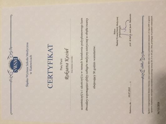 • Doktor Roksana Kozieł Medycyna Estetyczna • Wizyta kontrolna •