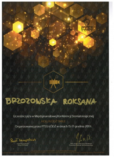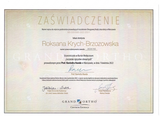 Jaki jest zakres porad oferowanych przez Roksana Krych-Brzozowska?Roksana Krych-Brzozowska to stomatolog. Na podstawie swojego doświadczenia i wykształcenia Roksana Krych-Brzozowska oferuje usługi takie jak: konsultacja ortodontyczna, Konsultacja stomatologiczna pierwsza + zdjęcie pantomograficzne, pakiet higienizacyjny, Konsultacja - ortodoncja nakładkowa, konsultacja ortodontyczna dzieci, Profilaktyka próchnicy/fluoryzacja, Wybielanie zębów, Konsultacja stomatologiczna (pierwsza wizyta), konsultacja stomatologiczna (pierwsza wizyta).