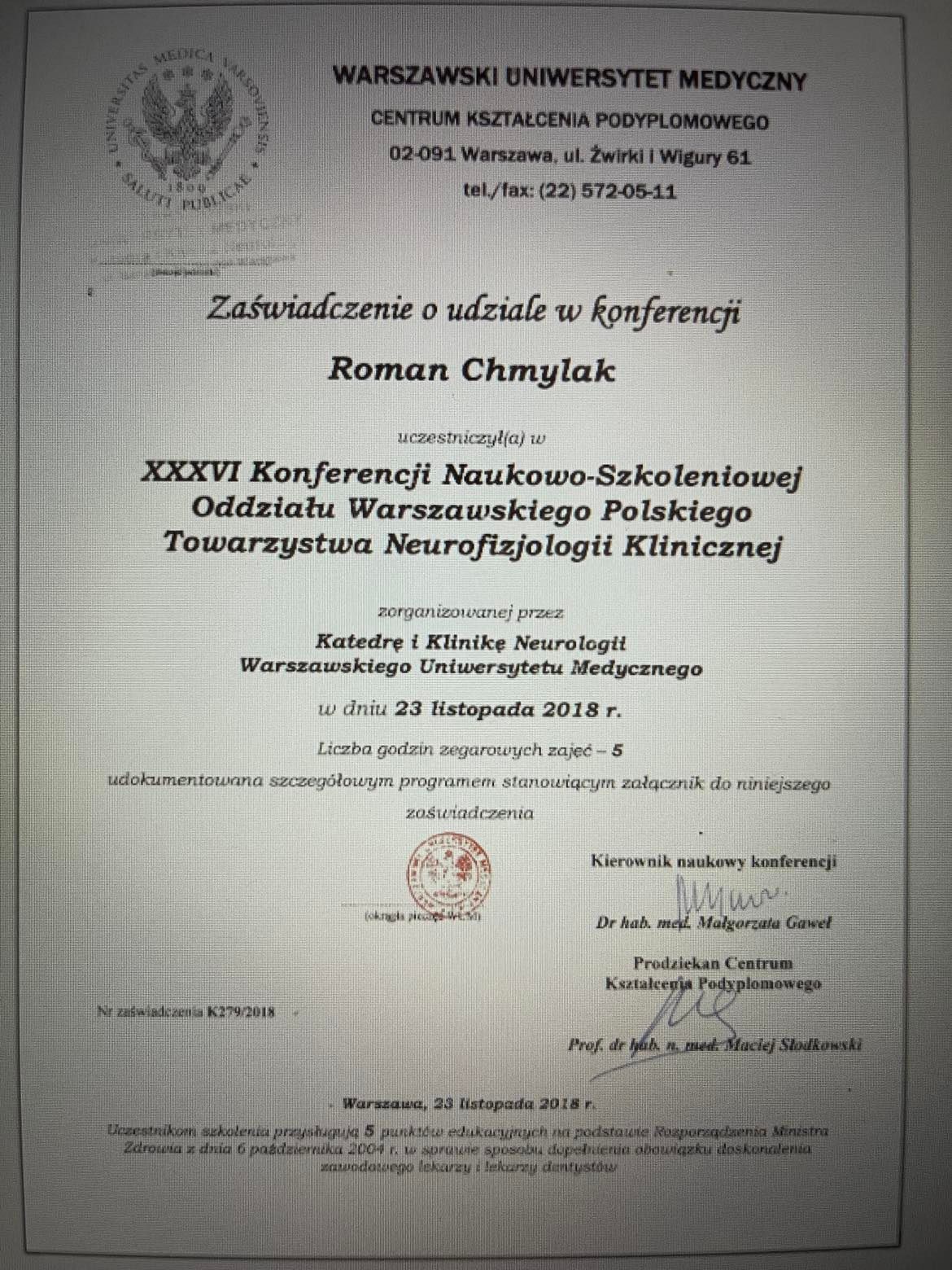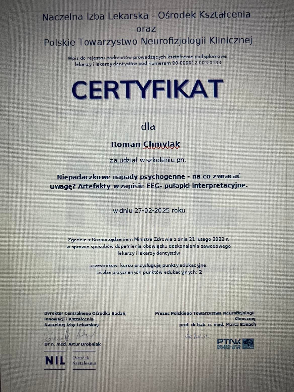 za spóźnienie przepraszam. Pragnę wyjaśnić - w 2019 roku nie prowadziłem odpłatnych konsultacji, jeśli poprosił Pan o wyjaśnienie opisu badania EEG to z całą pewnością była to usługa bezpłatna. Jedyną odpłatną dodatkowo opcją był w tym okresie opis w trybie CITO. Pozdrawiam i życzę zdrowia.