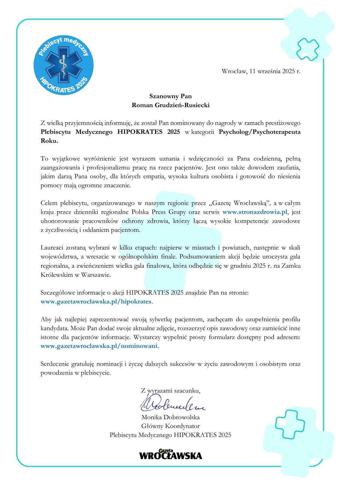 Należę do Polskiego Towarzystwa Psychologicznego. Pracuję w oparciu o Kodeks Etyczno - Zawodowy Psychologa.