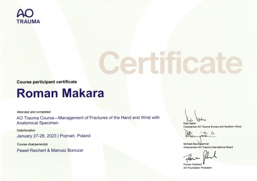 - AOTrauma – AOTauma Course – Management of Fractures of the Hand and Wrist with Anatomical Specimen