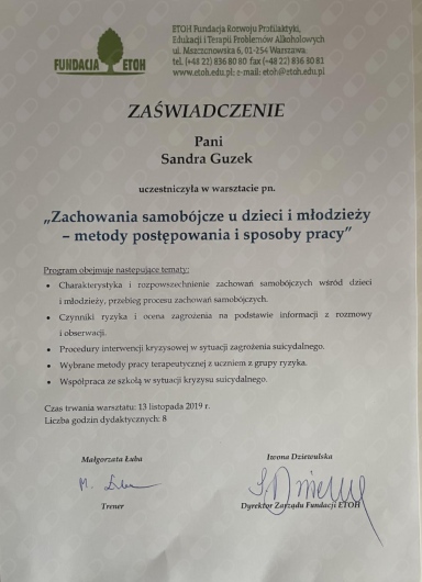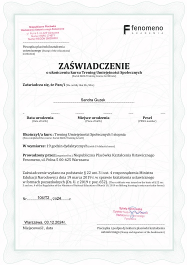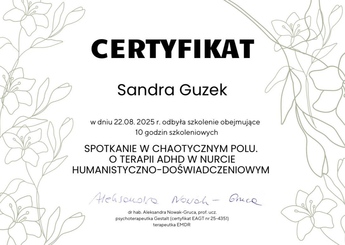 Ukończone szkolenia z zakresu psychoterapii Gestalt: