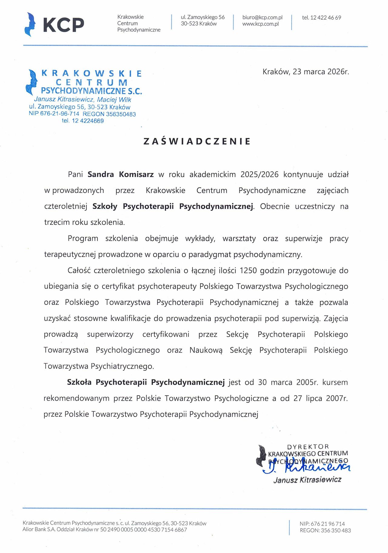 Czy Sandra Komisarz przyjmuje online, bez konieczności pojawiania się w placówce?Nie, w tym momencie Sandra Komisarz nie oferuje konsultacji online.