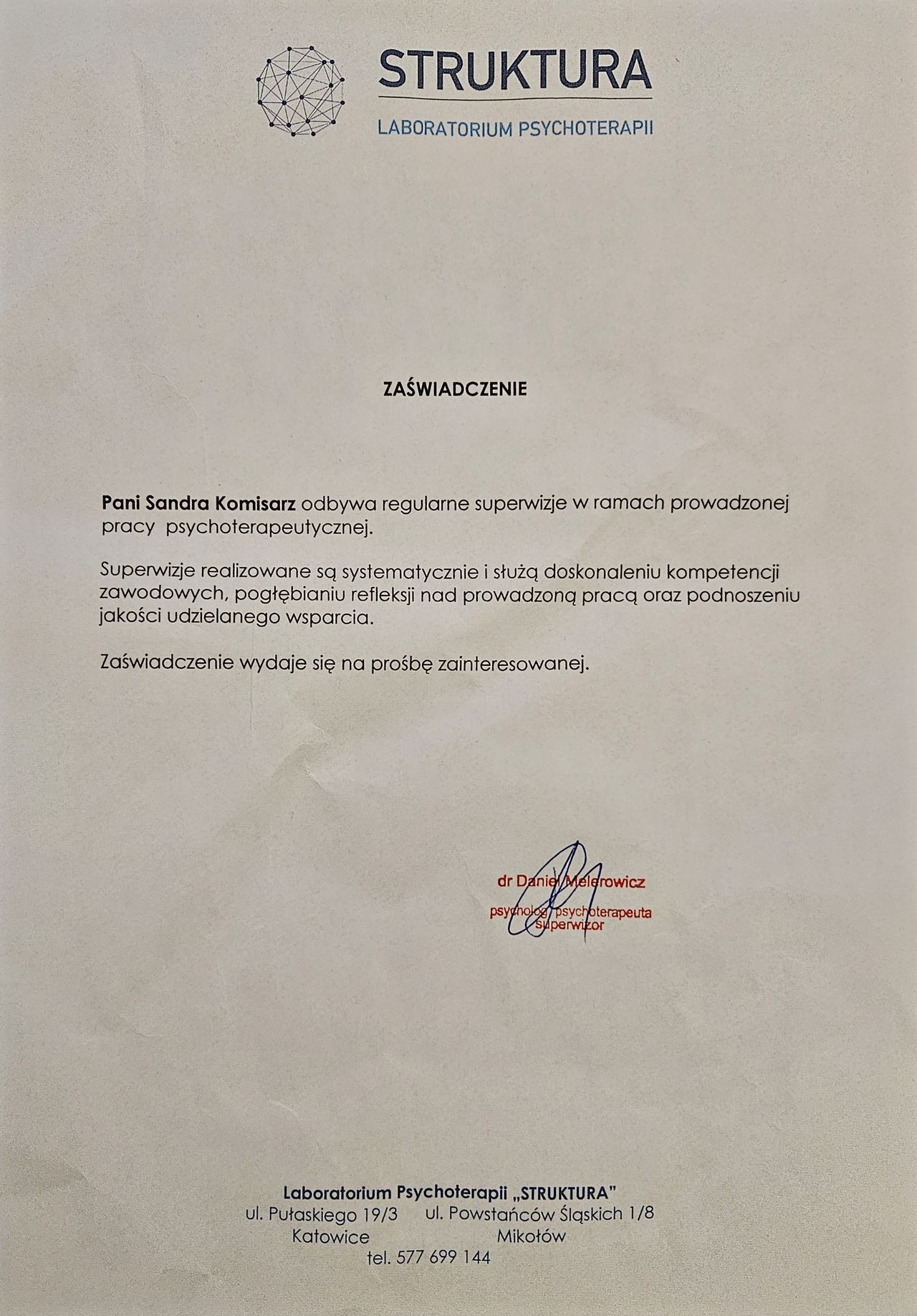 Serdecznie polecam.• Laboratorium Psychoterapii STRUKTURA • •