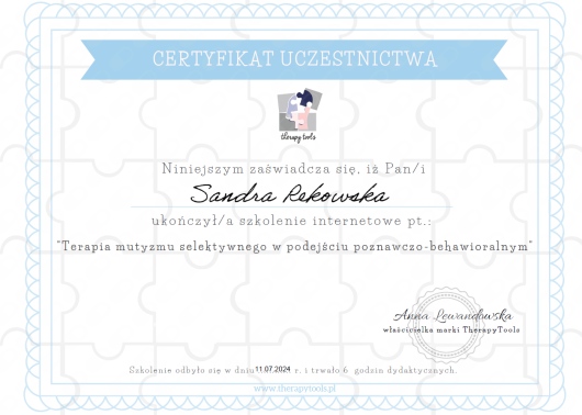 Szczególnie polecam Panią Sandrę! Spełniła się ponad nasze oczekiwania w roli terapetki mojego syna, której zaufał, przed która się otworzył i zbudował poczucie własnej wartości. Godna polecenia specjalistka!