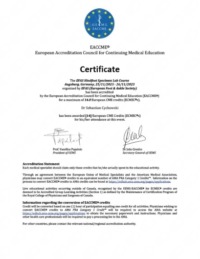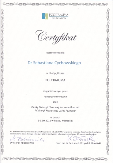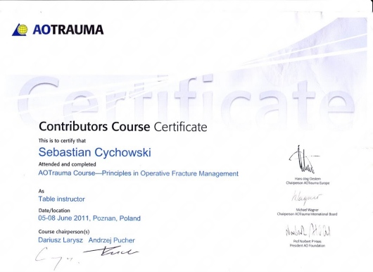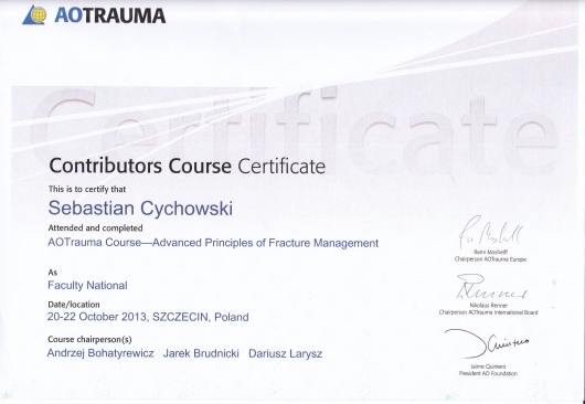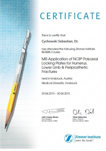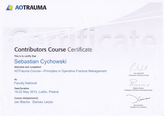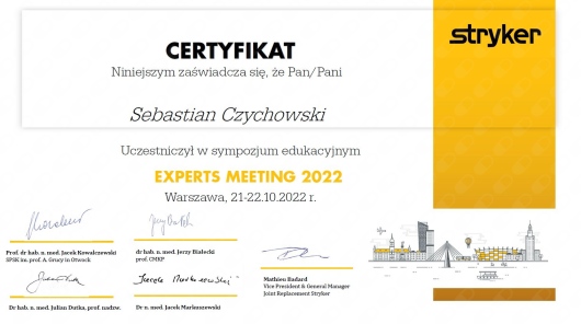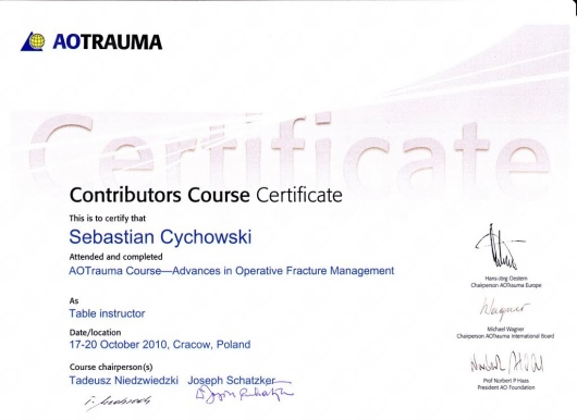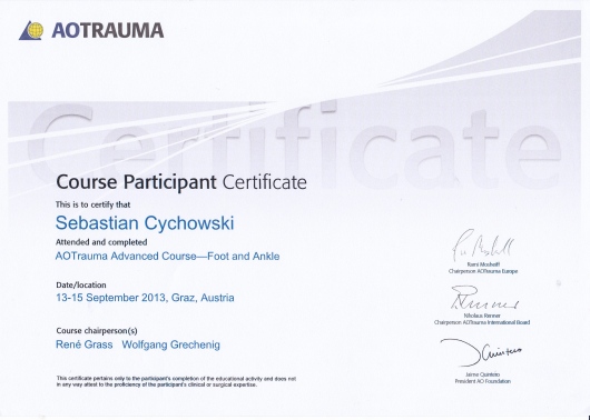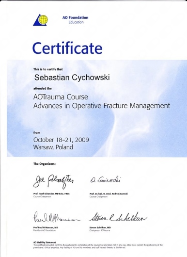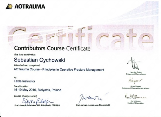 - Wieloletnie doświadczenie - Ciągły rozwój i doskonalenie – uczestnictwo w kursach i kongresach na całym świecie (2024 rok - Bazylea, Montreal, Bruksela, Augsburg, Praga, Barcelona) Członkostwo w prestiżowych organizacjach – AOTrauma Poland,Orthopaedic Trauma Association (OTA) Europejskie Towarzystwo Stopy i Stawu Skokowo-Goleniowego (EFAS). - Kompleksowe podejście – od diagnostyki po rehabilitację, zawsze w oparciu o najnowsze standardy. - Zaangażowanie w badania kliniczne – wprowadzanie innowacyjnych rozwiązań do codziennej praktyki.