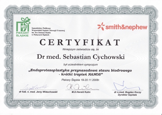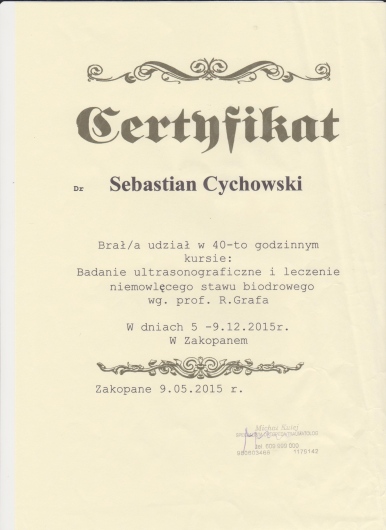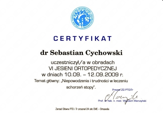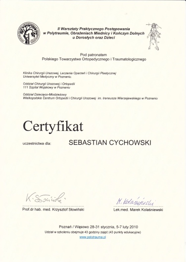 Dzień dobry, nazywam się Sebastian Cychowski. Jestem Specjalistą Ortopedii i Traumatologii Narządu Ruchu z wieloletnim doświadczeniem w leczeniu urazów i schorzeń narządu ruchu. Zapraszam do zapoznania się z moją ofertą medyczną oraz do umówienia wizyty w moim gabinecie.