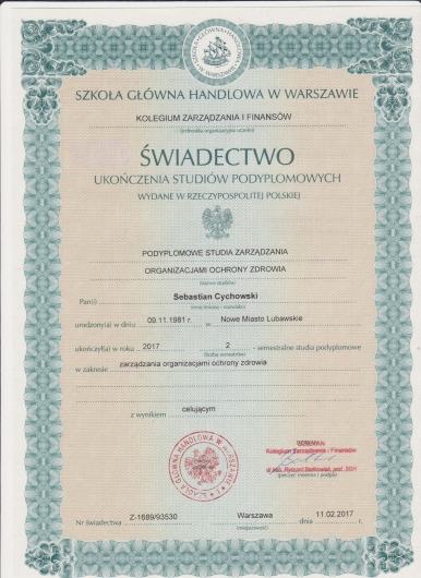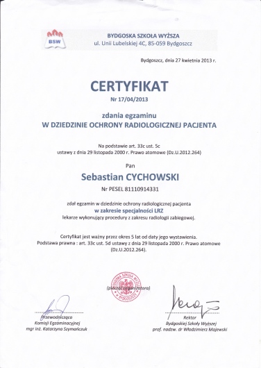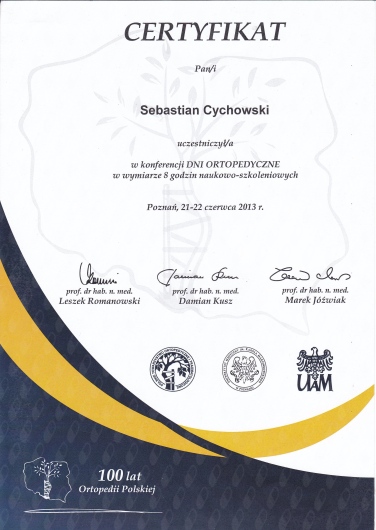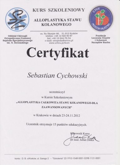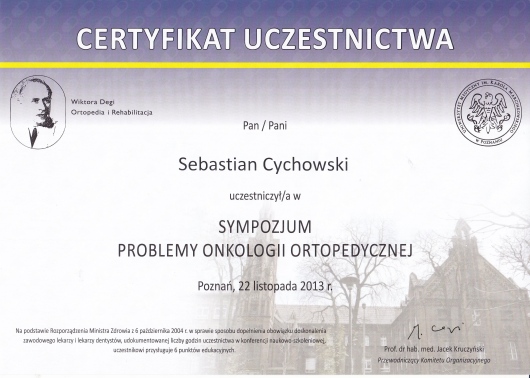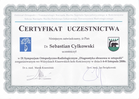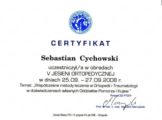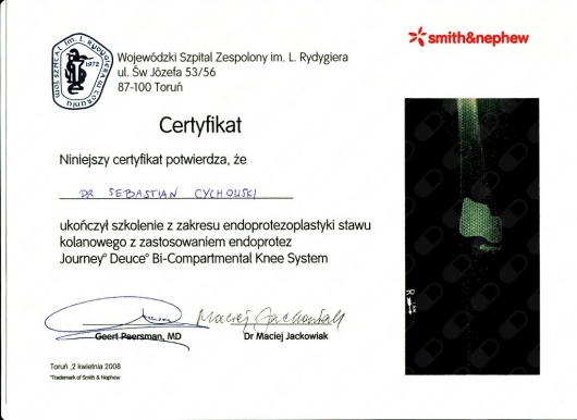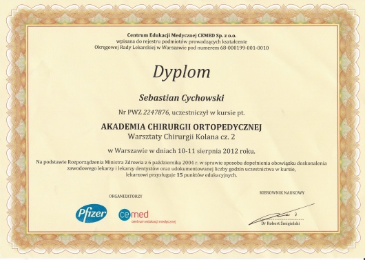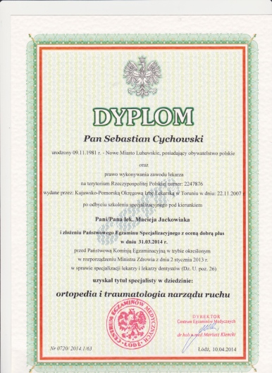 Wykształcenie: Absolwent Wydziału Lekarskiego Akademii Medycznej w Gdańsku (dyplom 2006), specjalizacja w Ortopedii i Traumatologii Narządu Ruchu (dyplom 2014). Ukończone studia podyplomowe z zakresu zarządzania organizacjami ochrony zdrowia (SGH) oraz MBA w Ochronie Zdrowia (SGH-WUM). Zainteresowania: turystyka motocyklowa, nowe technologie w medycynie, filozofia, golf. Języki obce: angielski. Zapraszam do umawiania wizyt i konsultacji – razem zadbajmy o sprawność i zdrowie Twojego narządu ruchu.