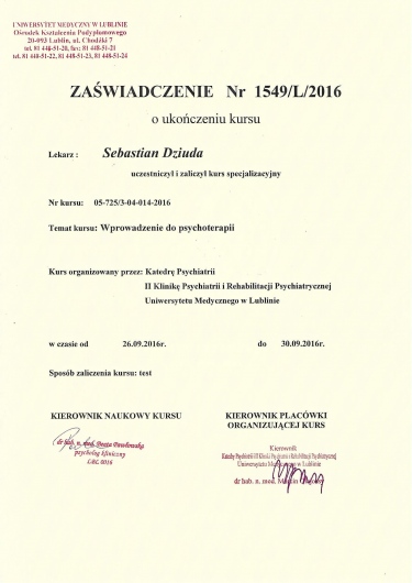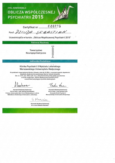 - od 2015 - Klinika Psychiatrii Dorosłych, Uniwersytet Medyczny w Poznaniu