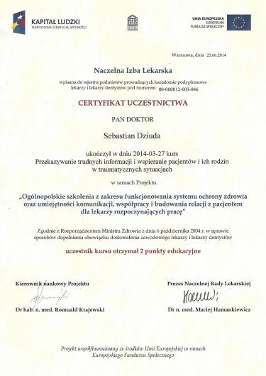 - 2013r. ukończył Uniwerytet Medyzcny w Poznaniu