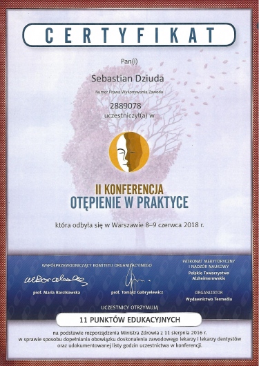 - 2016 - staż kliniczny w Klinice Neurologii Szpitala Klinicznego im. H. Święcickiego w Poznaniu