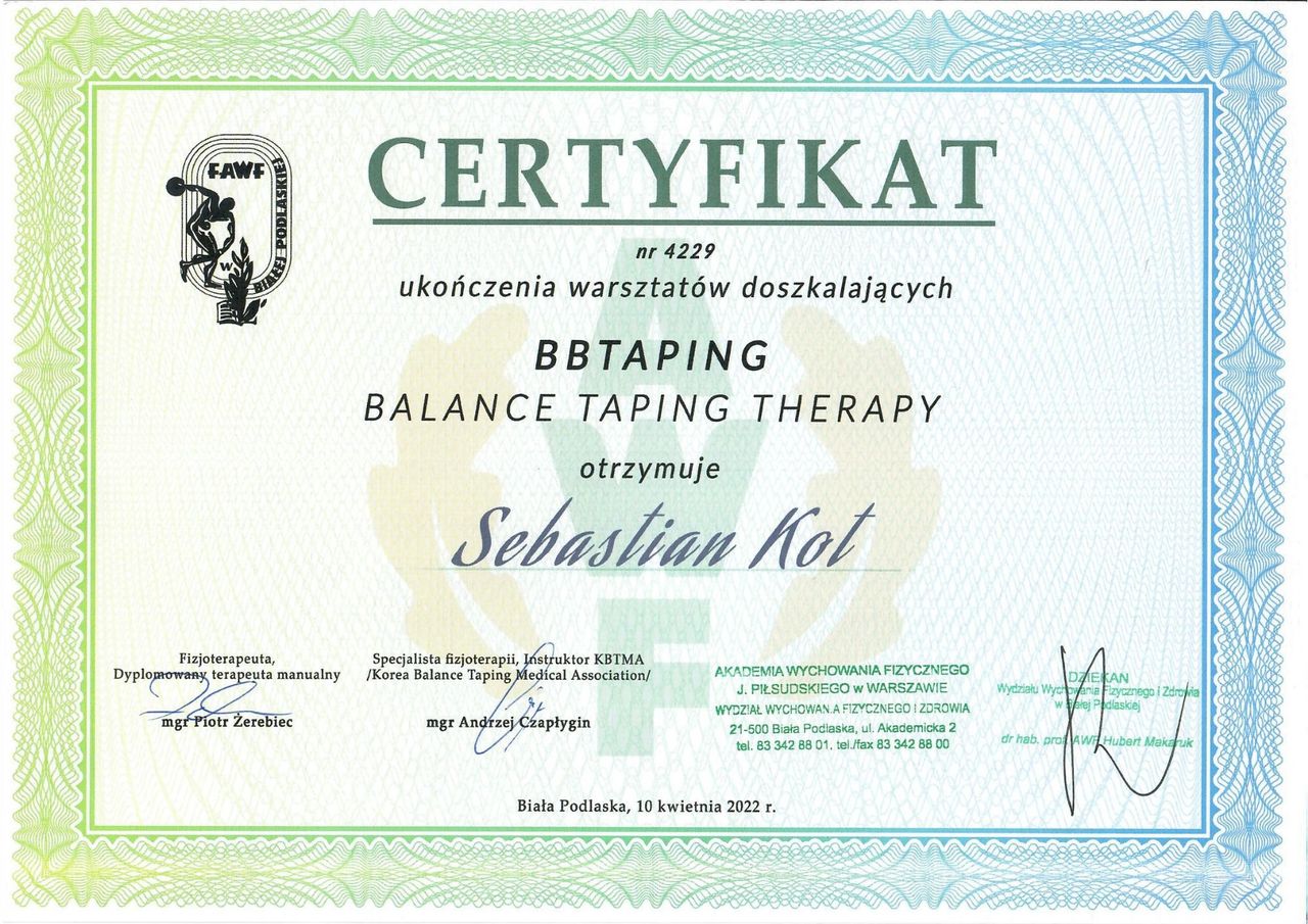Terapia stanowi uzupełnienie pracy manualnej i ćwiczeń, zgodnie z indywidualnym planem fizjoterapii.