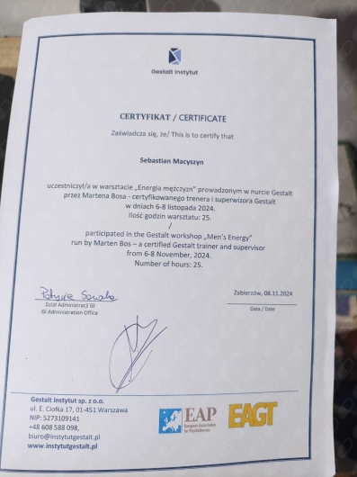 Chciałabym podzielić się moimi wrażeniami z sesji. Od pierwszej chwili poczułam się komfortowo i bezpiecznie. Sebastian wykazał się ogromnym zrozumieniem i empatią, co pozwoliło mi otworzyć się na trudne tematy. Jego profesjonalizm oraz umiejętność słuchania sprawiły, że każdy moment spędzony na sesji był dla mnie wartościowy. Dzięki jego wsparciu zyskałam nowe spojrzenie na swoje problemy. Gorąco polecam tego specjalistę każdemu, kto poszukuje zrozumienia i wsparcia w swoim życiu.